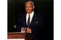 Treasure of the Month: Richard Lord is seated on the table second from left, between his older twin brothers Frederick Levi Lord and Reginald Samuel Lord. The eldest, James Robert Lord, is on the far right. This photo was taken circa early 1930s, before his younger sisters Dora Louise Lord and Gwendolyn Valerie Lord were born. Their father, James Levi Theophilus Lord, supported the family working as a railroad porter for CPR. Richard Lord would go on to contribute to events honouring black railroad porters, including an event in February 1999 when he spoke at the installation of a plaque for railroad porters in Windsor Station, Montreal. (Left picture)